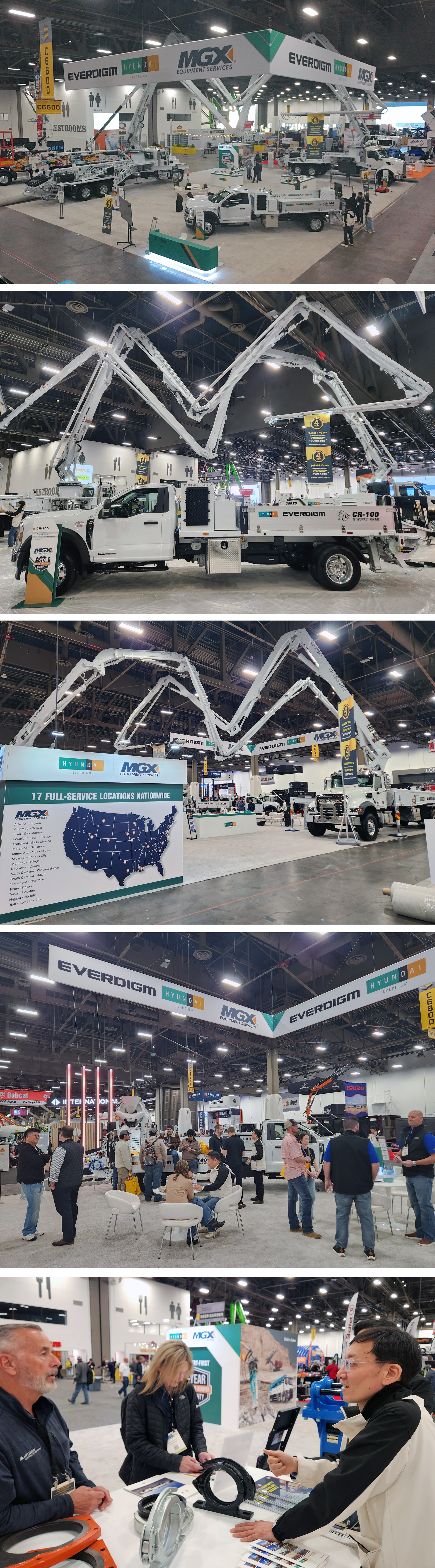 At the exhibition, HYUNDAI EVERDIGM showcased its established boom pump lineup alongside the newly introduced CR-100 line pump, designed specifically for the North American market.
